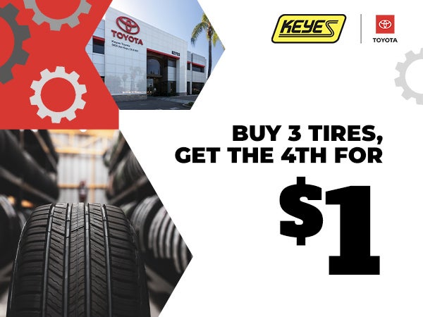 Restrictions apply. Toyota and Scion vehicles only. See dealer for details, eligible tires & exclusions. Tires must be dealer installed. Valid only at Keyes Toyota.
