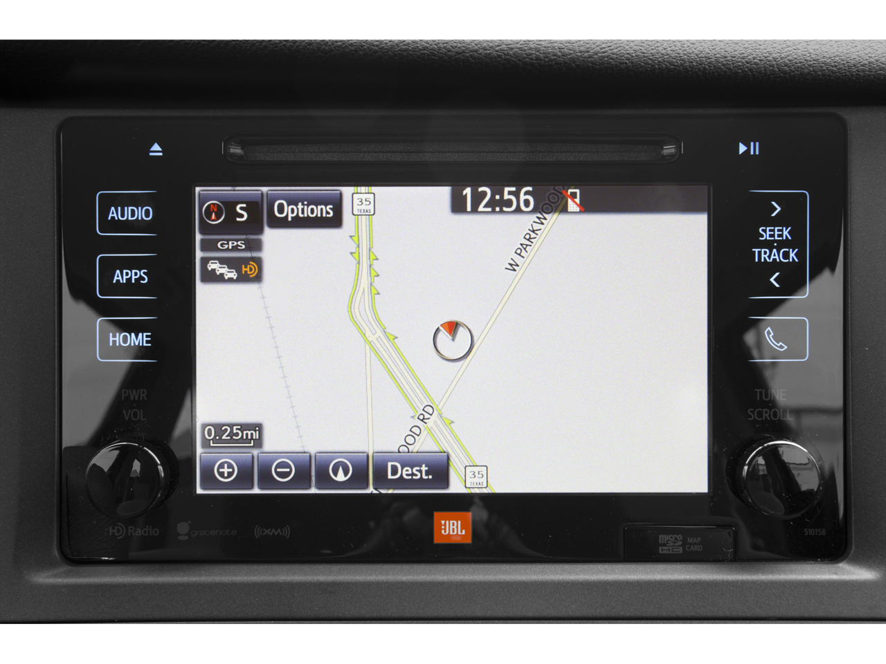 - Radio: AM/FM/HD/CD Audio w/Navigation System -inc: Entune Multimedia Bundle, 7" high resolution touch-screen w/split-screen display, MP3/WMA playback capability, 6-speakers, auxiliary audio jack, USB 2.0 port w/iPod connectivity and control, advanced voice recognition, hands-free phone capability, phone book access, music streaming via Bluetooth® wireless technology, Entune App Suite, HD predictive traffic and Doppler weather overlay, AM/FM cache radio, SiriusXM Radio w/3-month complimentary trial, Gracenotes album cover art and integrated backup camera display w/two views and on-screen backup guides